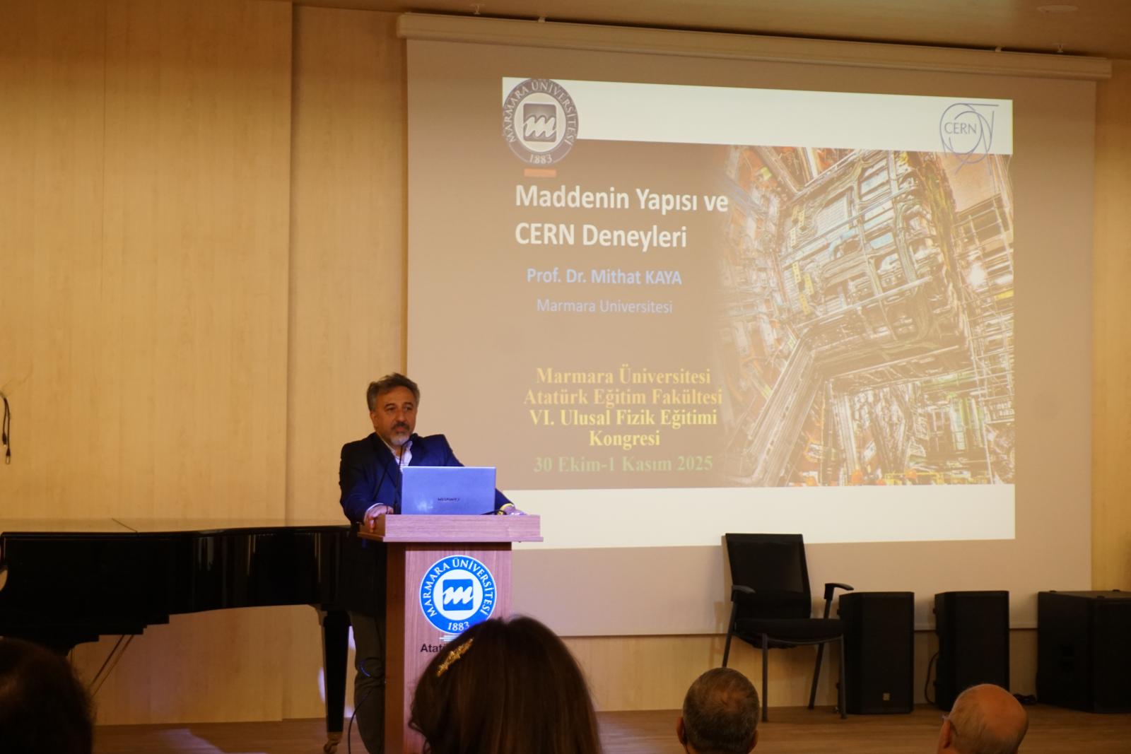 - Prof. Dr. Mithat Kaya (Marmara Üniversitesi): “Maddenin Yapısı ve CERN Deneyleri” sunumunda parçacık fiziğinin güncel yönelimlerini ve Türkiye’nin CERN çalışmalarındaki konumunu etkileyici bir anlatımla aktardı. Salon, modern fiziğin derinliklerine açılan bu yolculukta adeta nefesini tuttu.